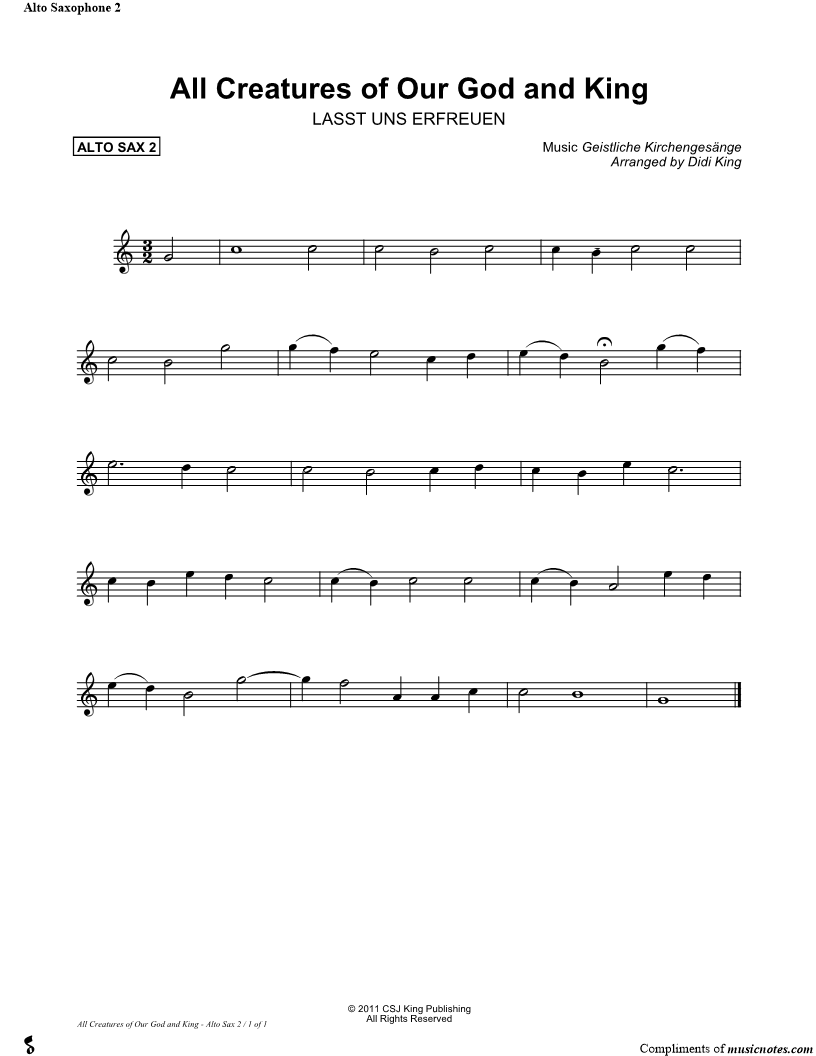 All Creatures of Our God and King - Alto Sax 2 (Sax Quartet) |