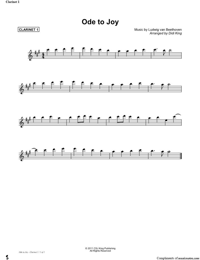 Ode to Joy - Clarinet 1 (Clarinet Quartet) |