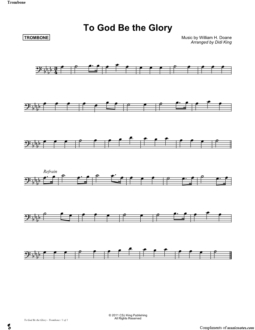 To God Be the Glory - Trombone (Brass Quartet) |