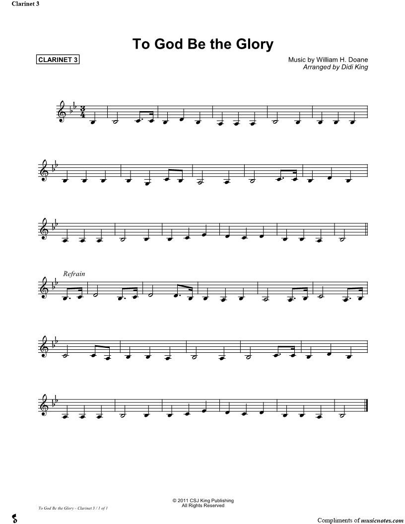 To God Be the Glory - Clarinet 3 (Clarinet Quartet) |