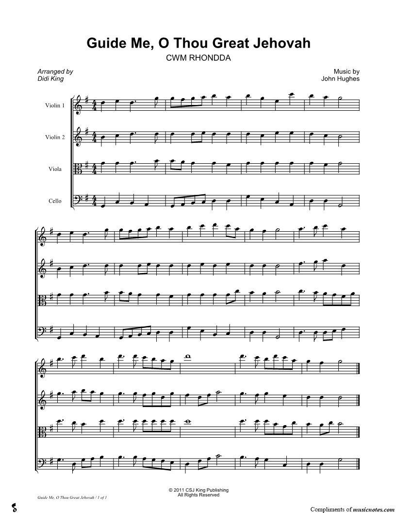 Guide Me, O Thou Great Jehovah - String Quartet Score |