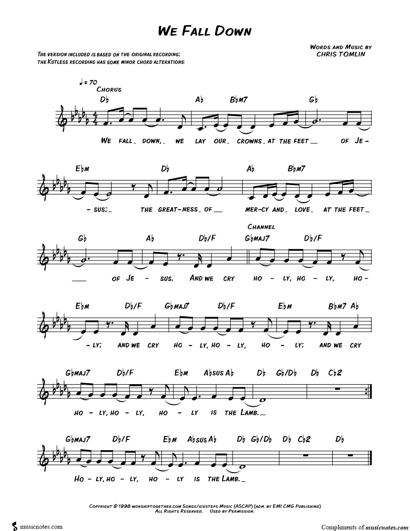 We fall down,we lay our crowns at the feet of Jesus; the greatness of mercy and love at the feet of Jesus. |