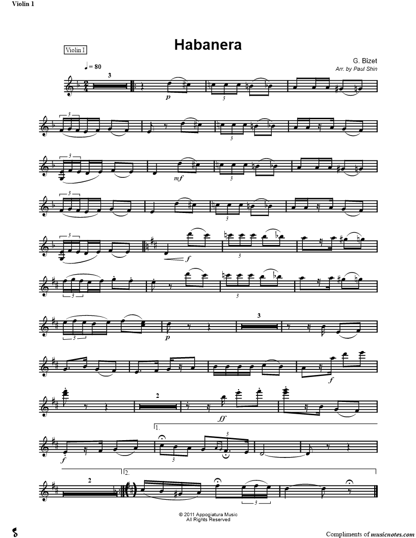 Habanera - Violin 1 (String Quartet) |