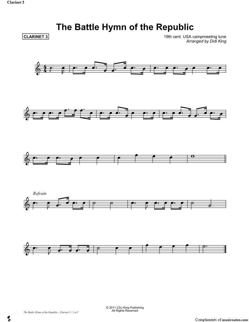 Battle Hymn of the Republic - Clarinet 3 (Clarinet Quartet) |