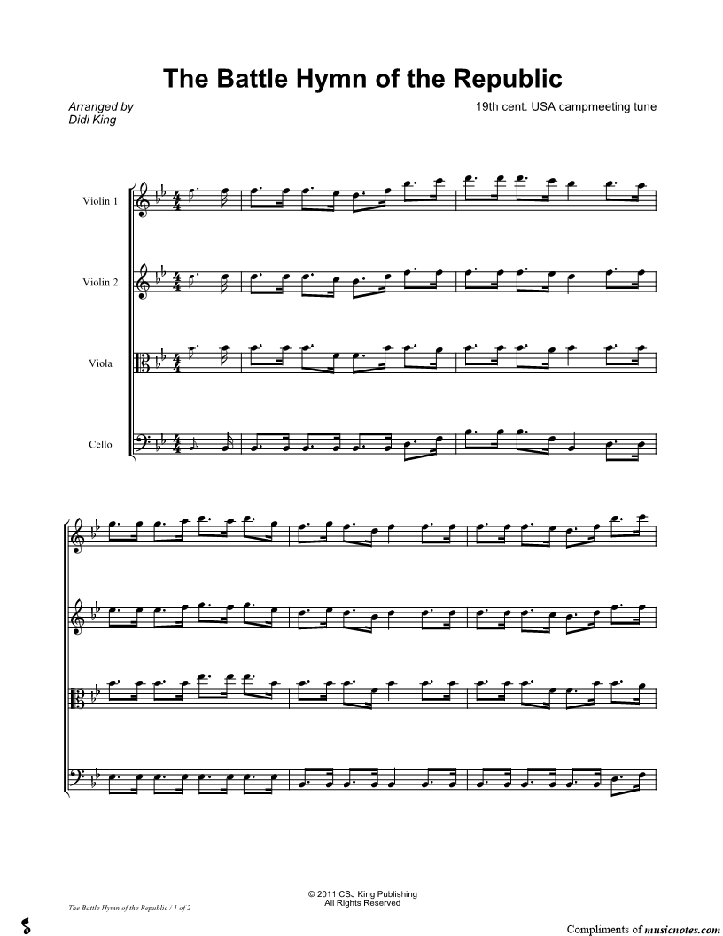Battle Hymn of the Republic - String Quartet Score |