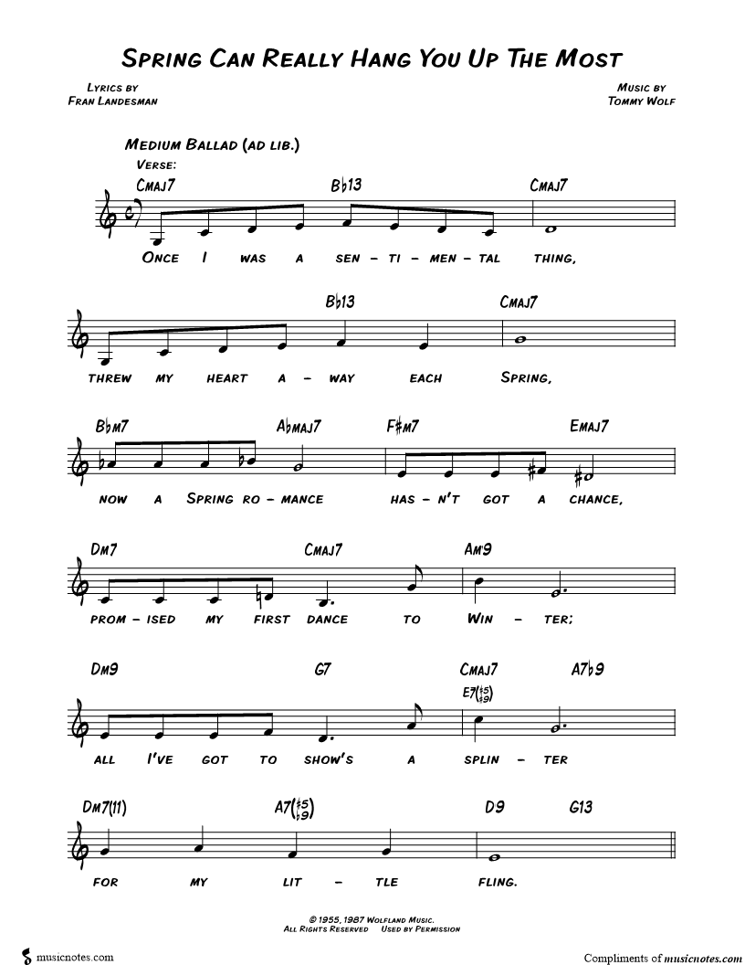 Once I was a sentimental thing, threw my heart away each Spring, now a Spring romance hasn't got a chance, promised my first dance to Winter; all I've got to show's a splinter for my little fling. |