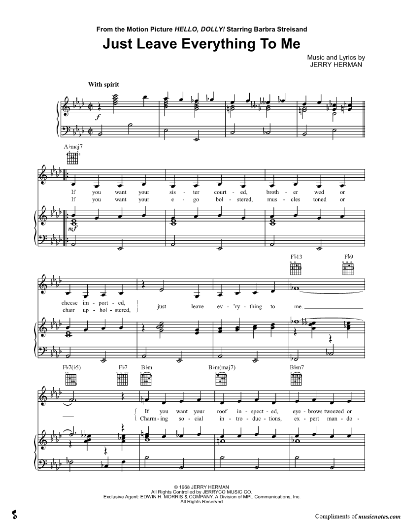 If you want your sister courted, brother wed or cheese imported, just leave ev'rything to me. |