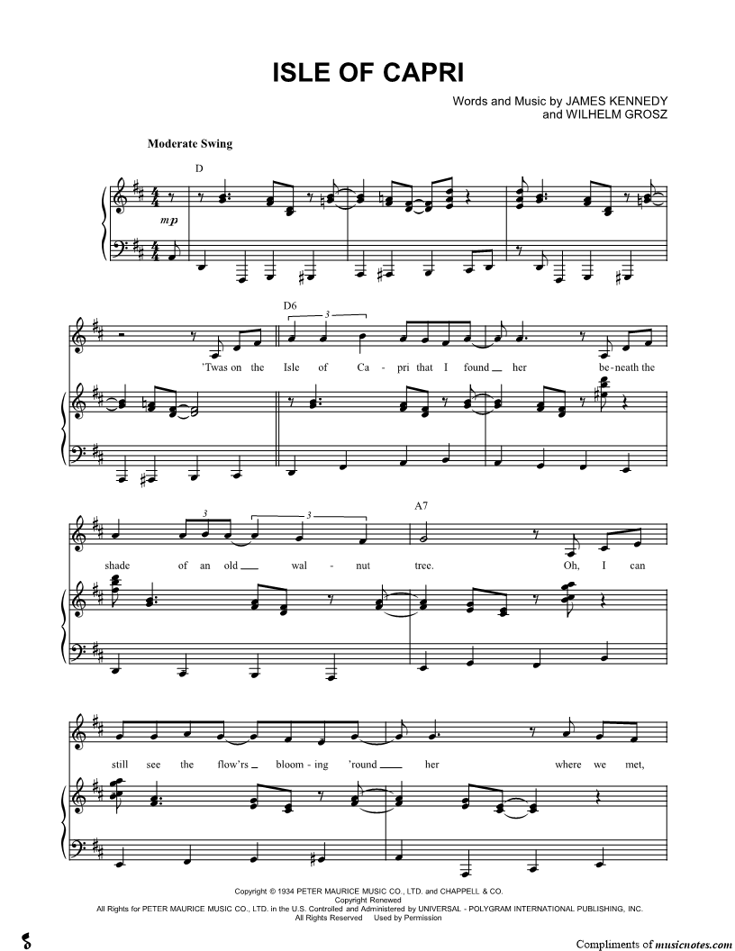 'Twas on the Isle of Capri that I found her beneath the shade of an old walnut tree. |