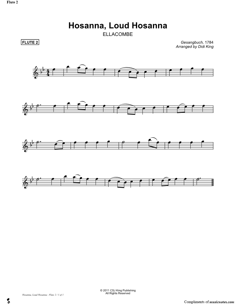 Hosanna, Loud Hosanna - Flute Part 2 (Flute Quartet) |