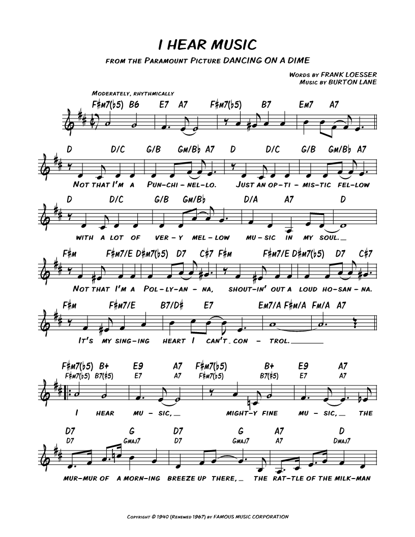 Leadsheets typically only contain the lyrics, chord symbols and melody line of a song and are rarely more than one page in length. Musicians will often use these skeletons to improvise their own arrangements. Leadsheets often do not contain complete lyrics to the song.