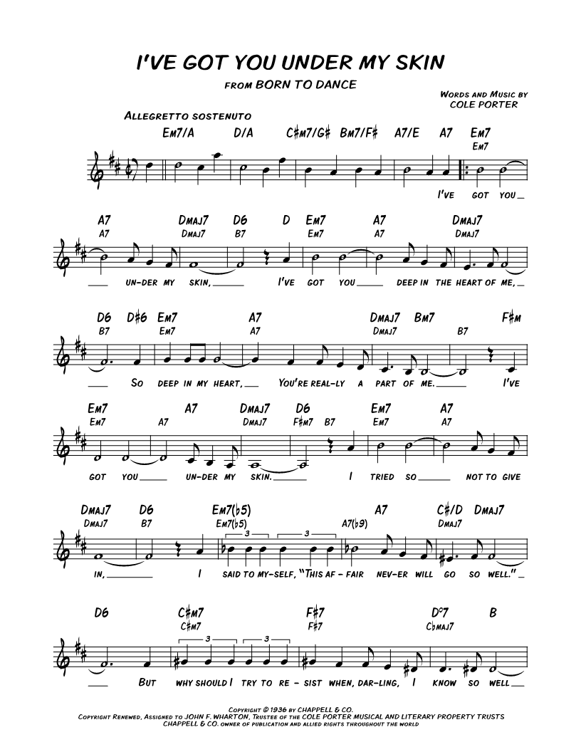 I've got you under my skin, |