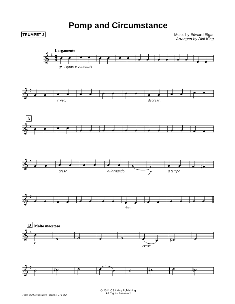 Pomp and Circumstance - Trumpet 2 Part (Brass Quartet) |