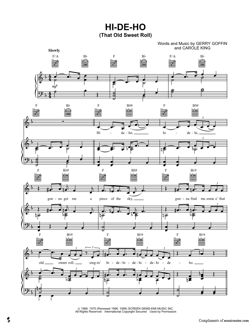 Hi-de-ho, hi-de-hi, gonna get me a piece of the sky, gonna find me some o' that old sweet roll, singin' hidehidehidehideho. |
