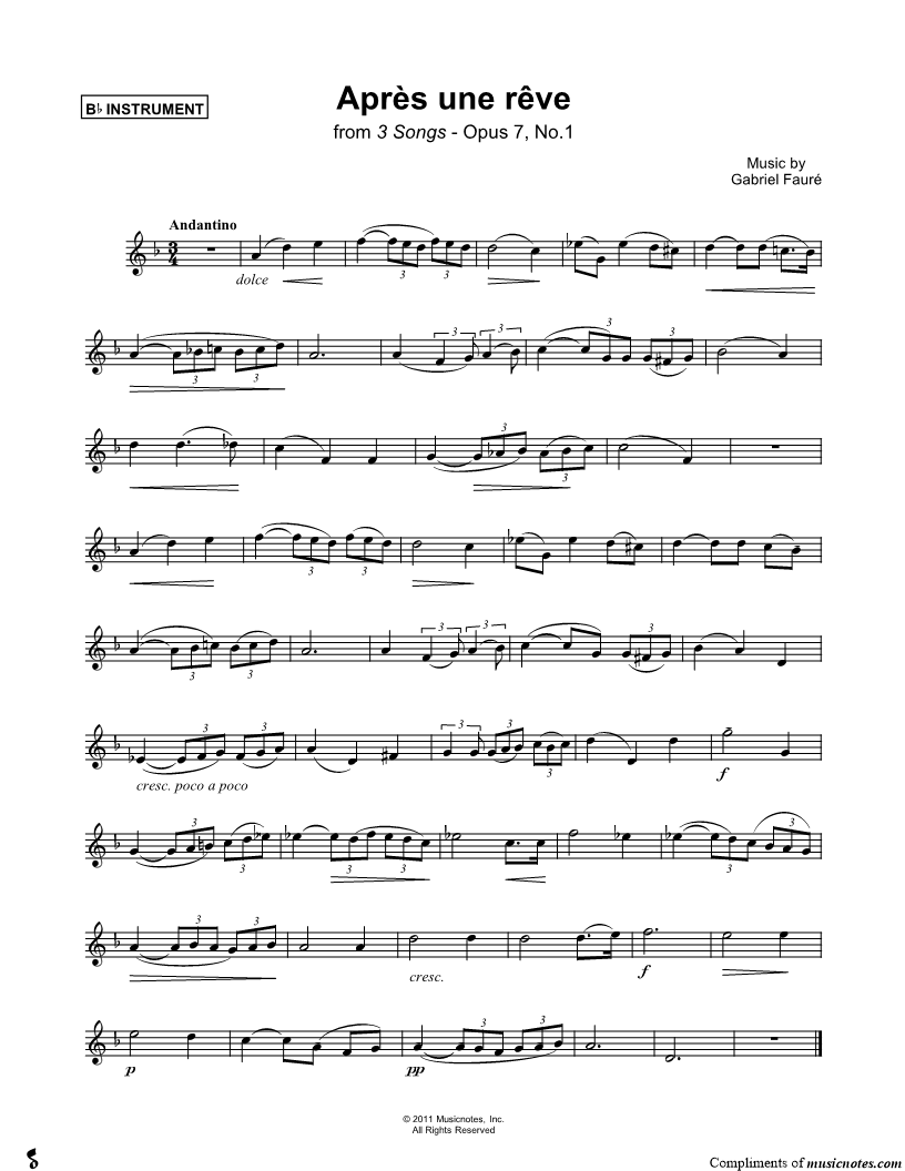 Après un rêve - Bb Instrument |