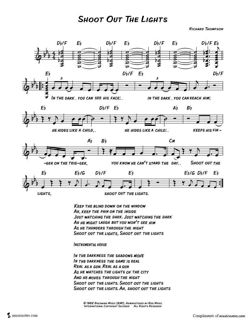 In the dark you can see his face; in the dark you can reach him; he hides like a child, he hides like a child; keeps his finger on the trigger, you know he can't stand the day. |