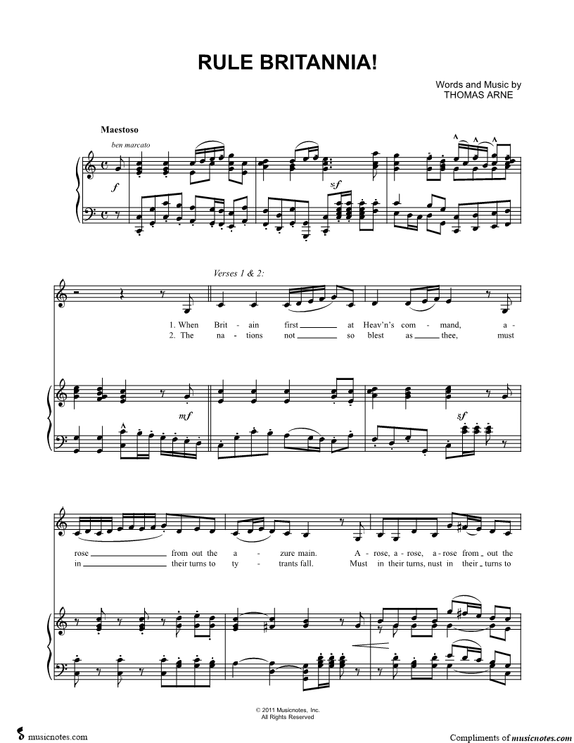 When Britain first at Heav'n's command, arose from out the azure main. |
