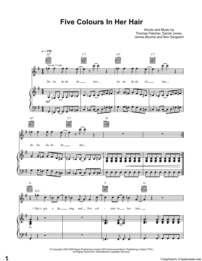 Do do do do do doo, do do do do do doo, do do do do do doo. She's got a lip ring and five colours in her hair, |