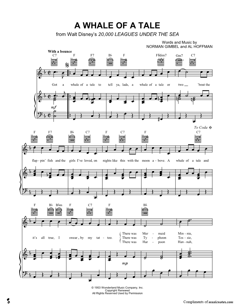 Got a whale of a tale to tell ya, lads, a whale of a tale or two 'bout the flappin' fish and the girls I've loved, on nights like this with the moon above. |