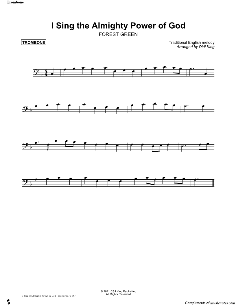 I Sing the Almighty Power of God - Trombone (Brass Quartet) |