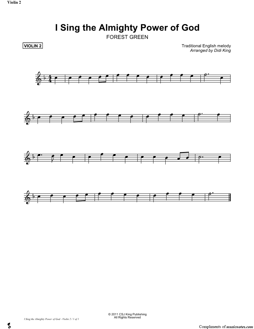 I Sing the Almighty Power of God - Violin 2 (String Quartet) |