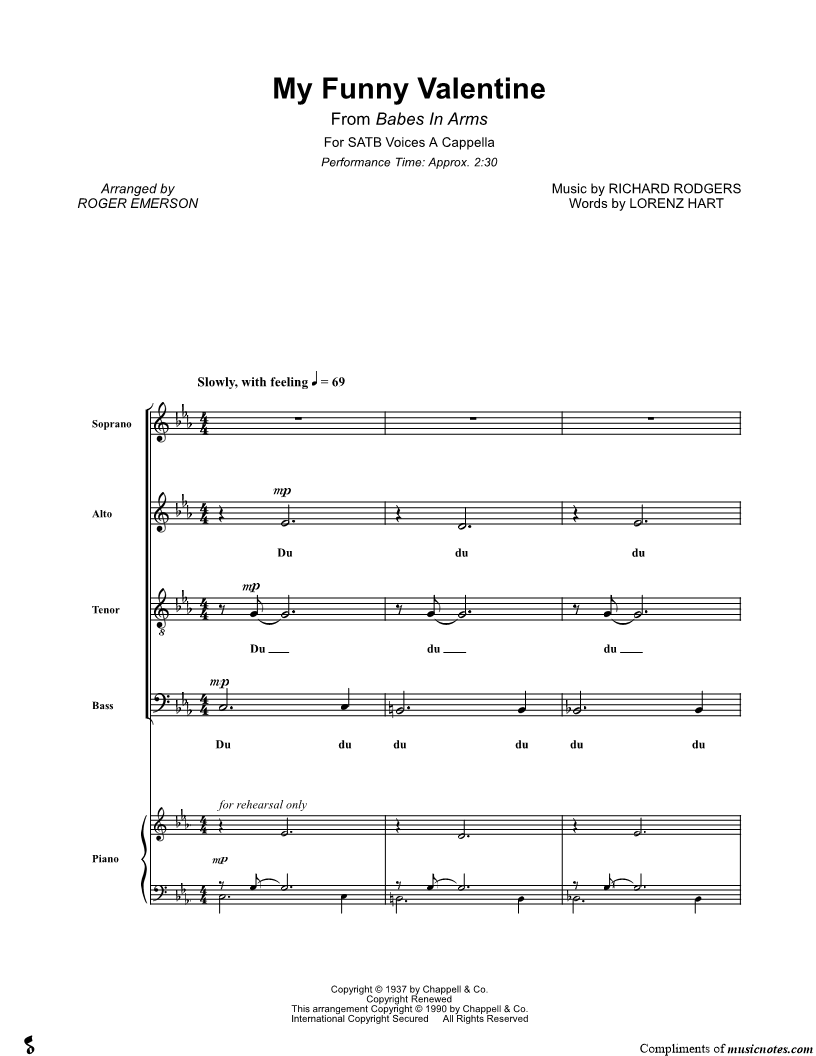 My funny valentine, sweet comic valentine, you make me smile with my heart. |