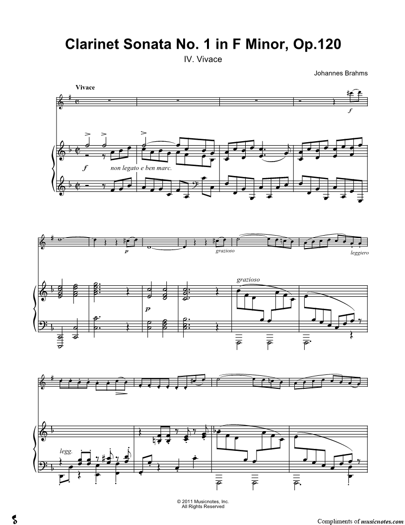Clarinet Sonata No. 1 In F Minor, Op. 120: IV. Vivace - Piano Accompaniment |