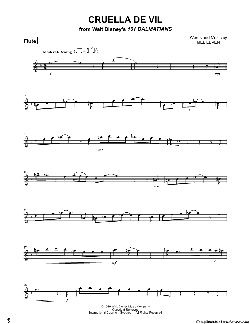 Cruella de Vil - Flute & Piano from Walt Disney's 101 Dalmatians