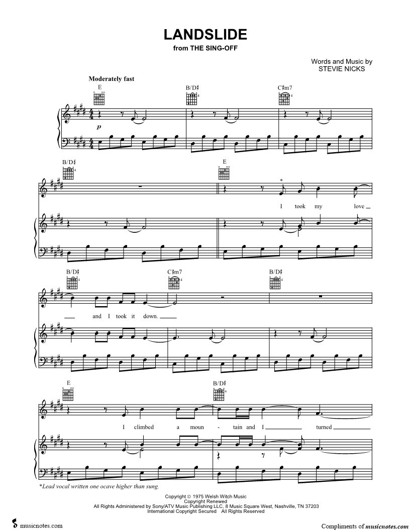 "Landslide is in E major and should be in Eflat major to match album. I like to play piano..." Read reviews