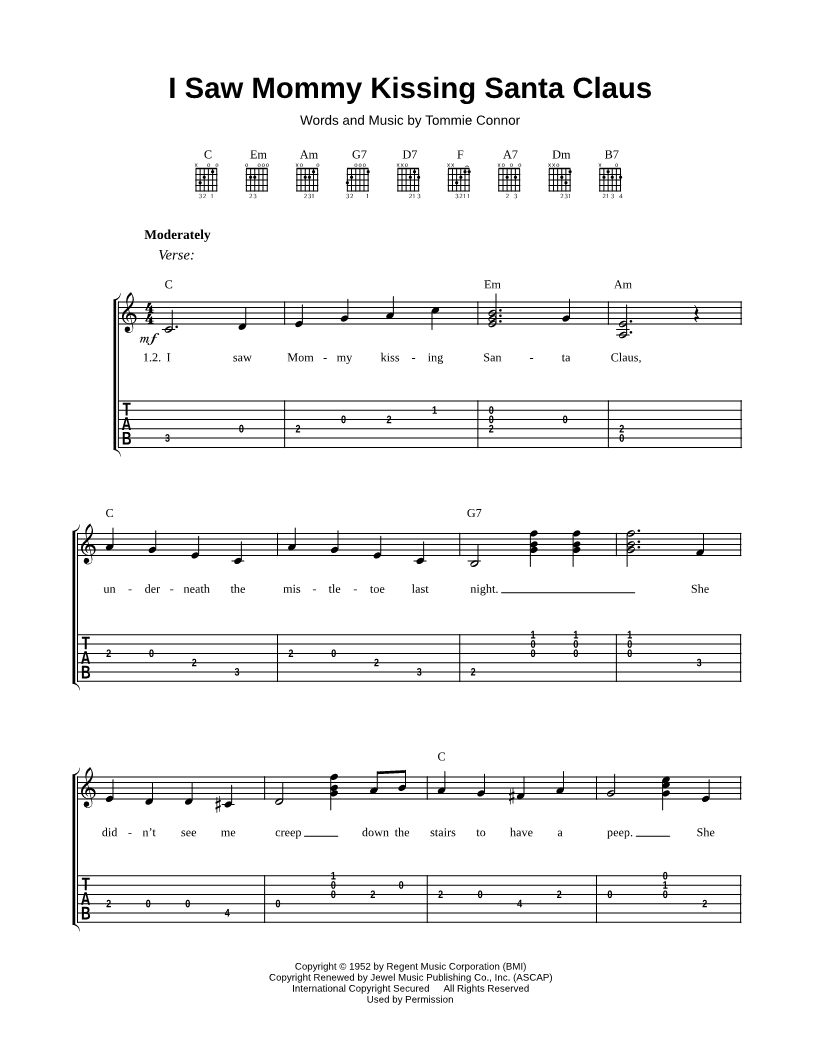 I saw Mommy kissing Santa Claus, underneath the mistletoe last night. |