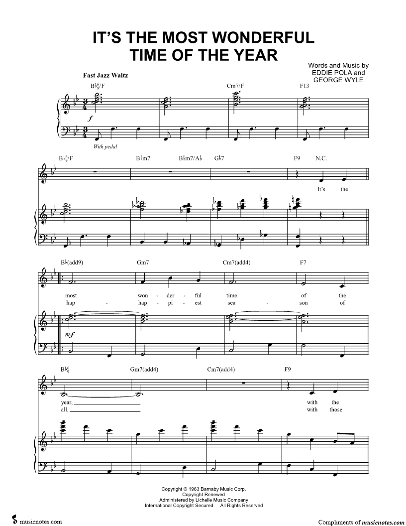 It's the most wonderful time of the year, with the kids jingle belling and ev'ryone telling you “Be of good cheer!” It's the most wonderful time of the year. |