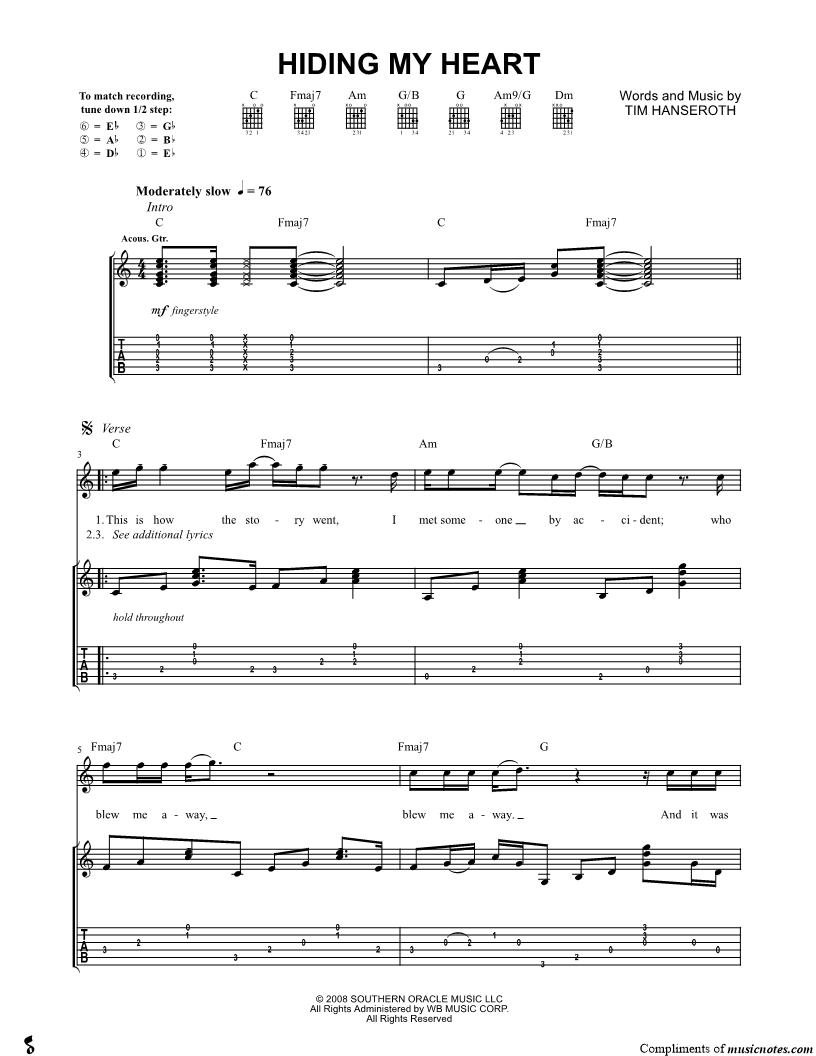 Guitar Tab Guitar/Vocal |