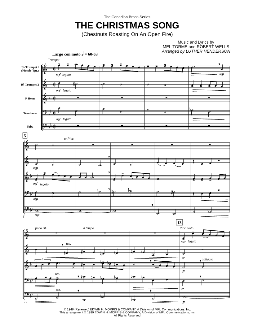 The Christmas Song (Chestnuts Roasting on an Open Fire) - Brass Quintet Score |