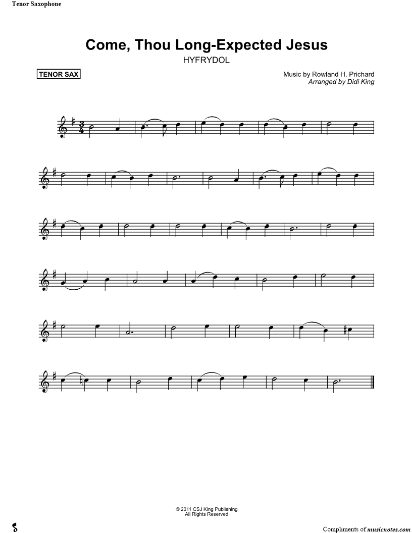 Come, Thou Long- Expected Jesus - Tenor Sax (Saxophone Quartet) |