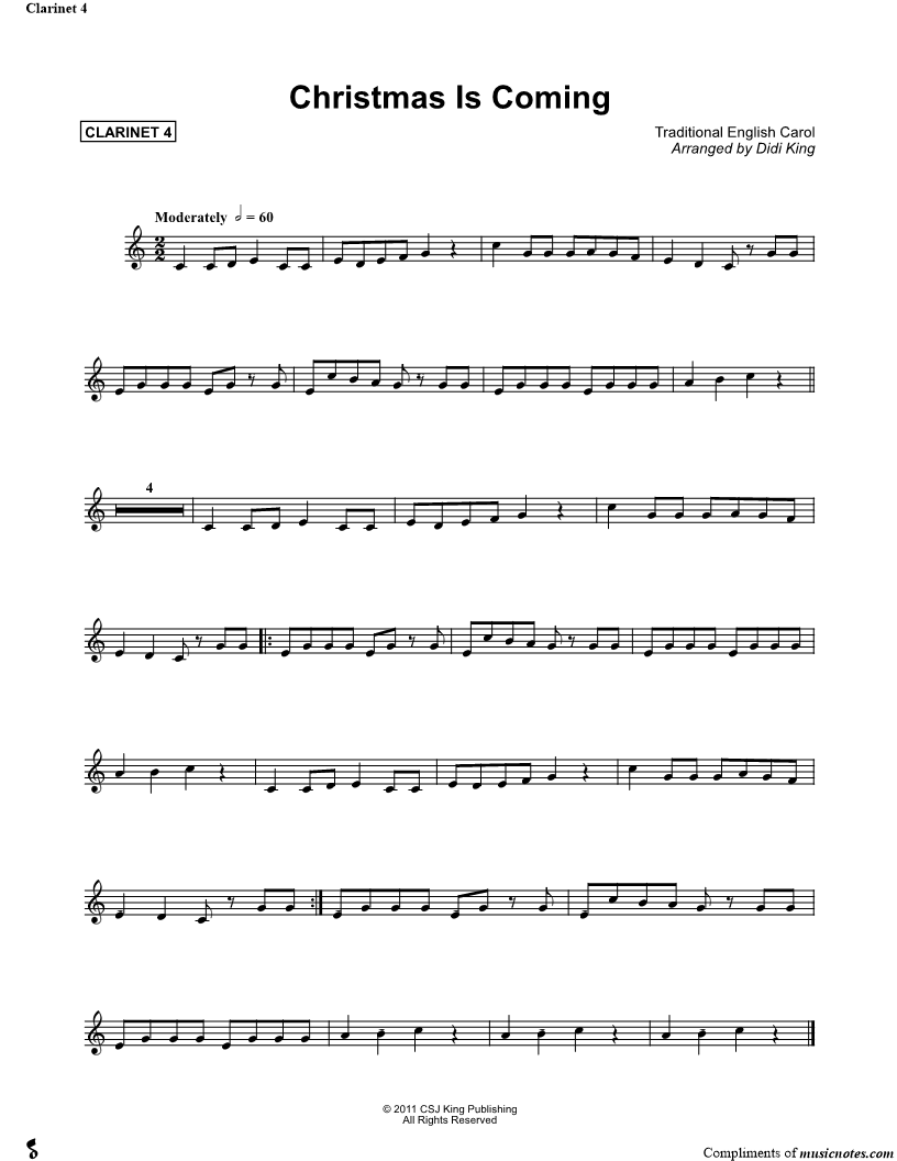 Christmas Is Coming - Clarinet 4 (Clarinet Quartet) |