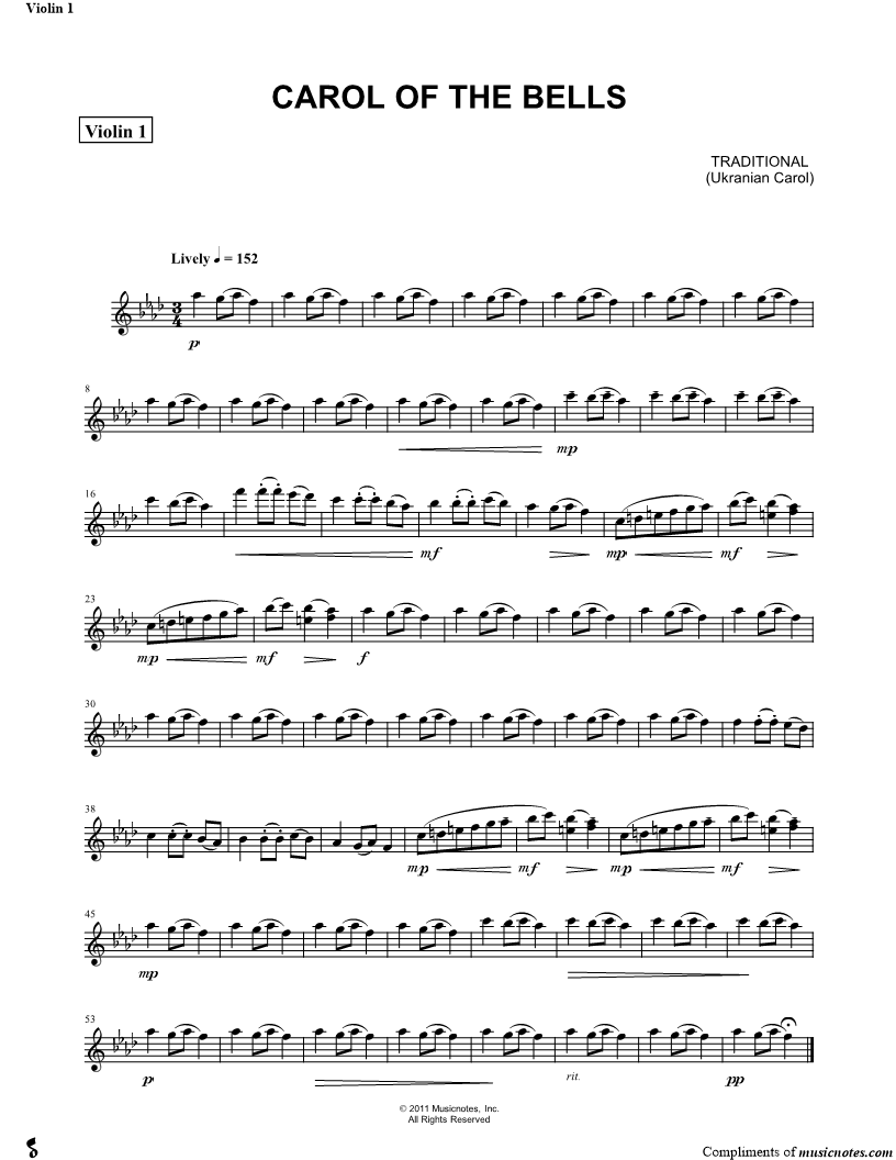 Carol of the Bells - Violin 1 (String Quartet) |