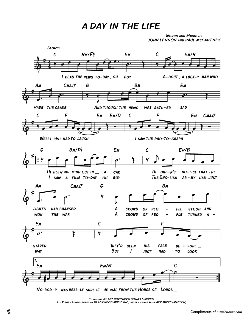 I read the news today oh boy about a lucky man who made the grade |