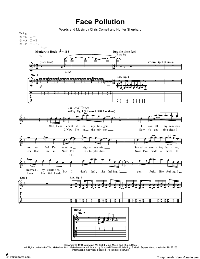 Voice, range: Bb4-A6 Guitar 1, range: D3-A5 Guitar 2 | |