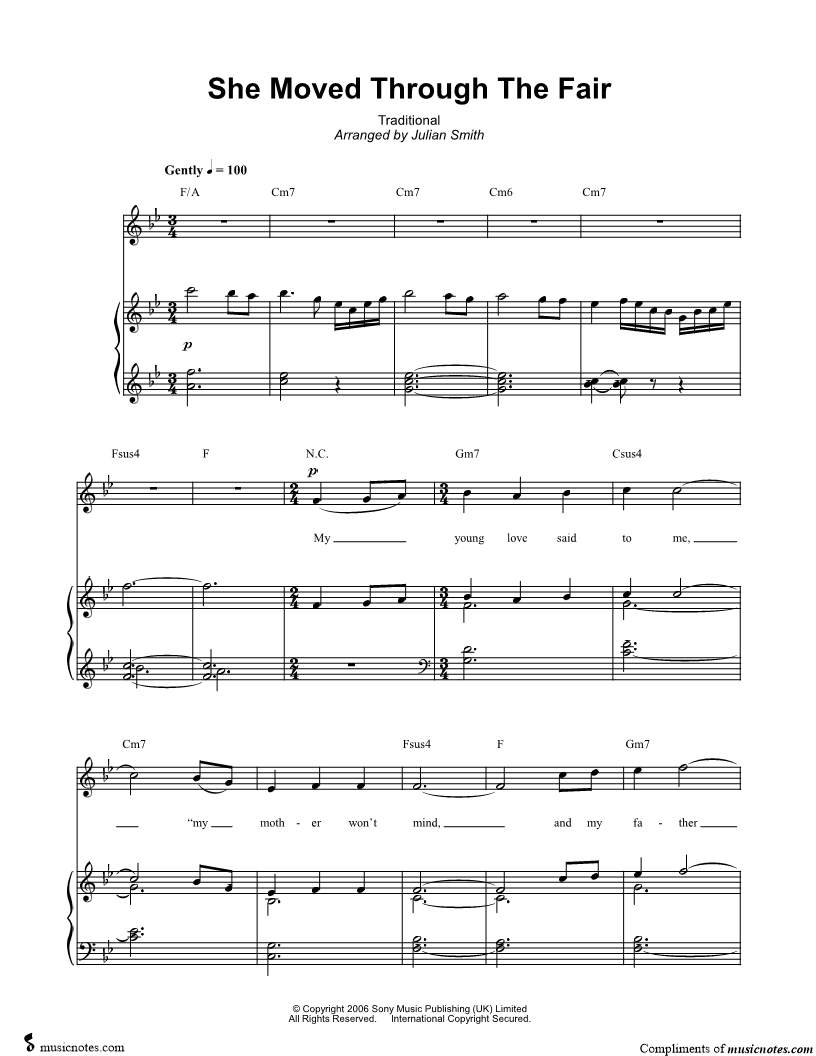 My young love said to me, "my mother won't mind, and my father won't slight you for your lack of kind" and she stepped away from me and this she did say, "it will not be long now 'til our wedding day." |