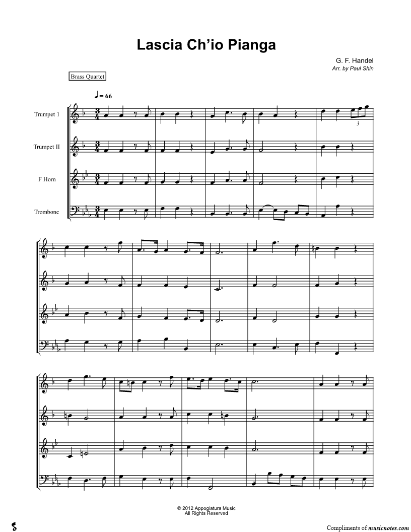 Lascia Ch'io Pianga - Score (Brass Quartet) |