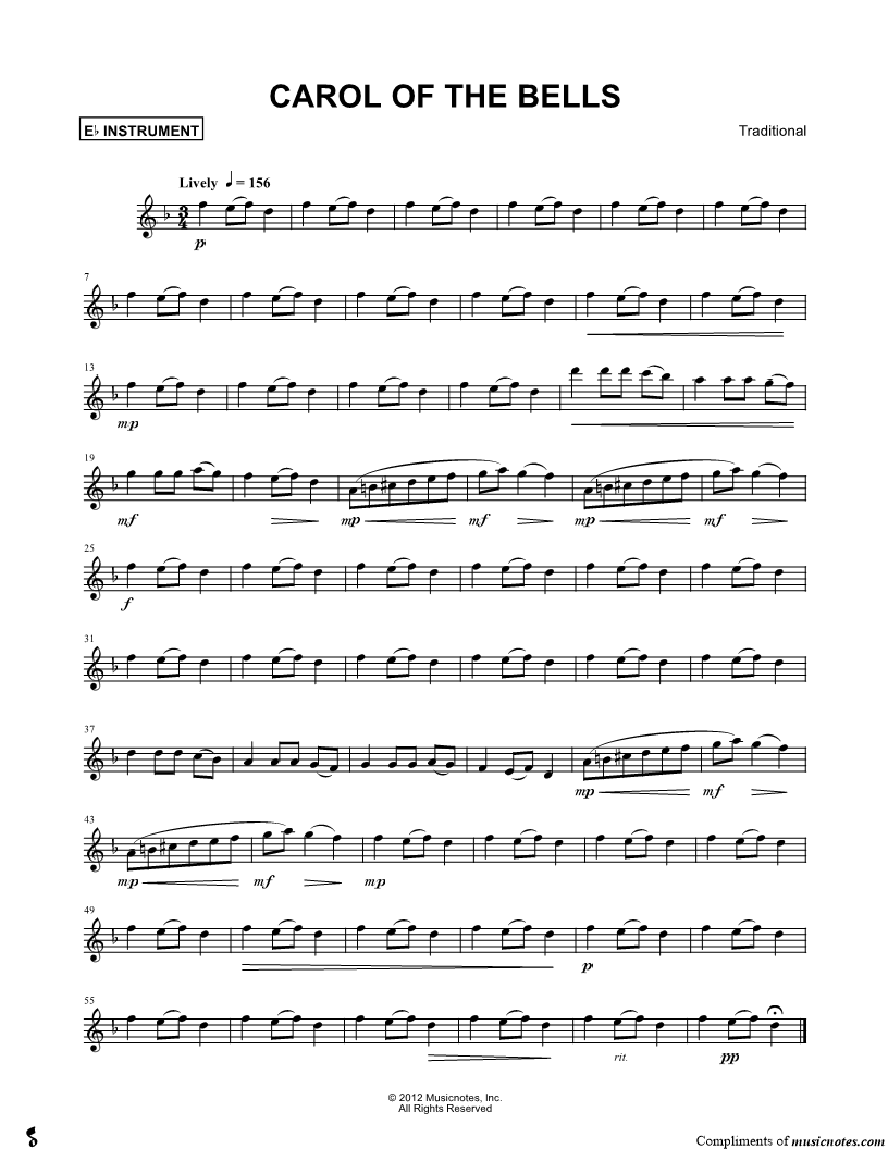 Carol of the Bells - Eb Instrument & Piano Accompaniment