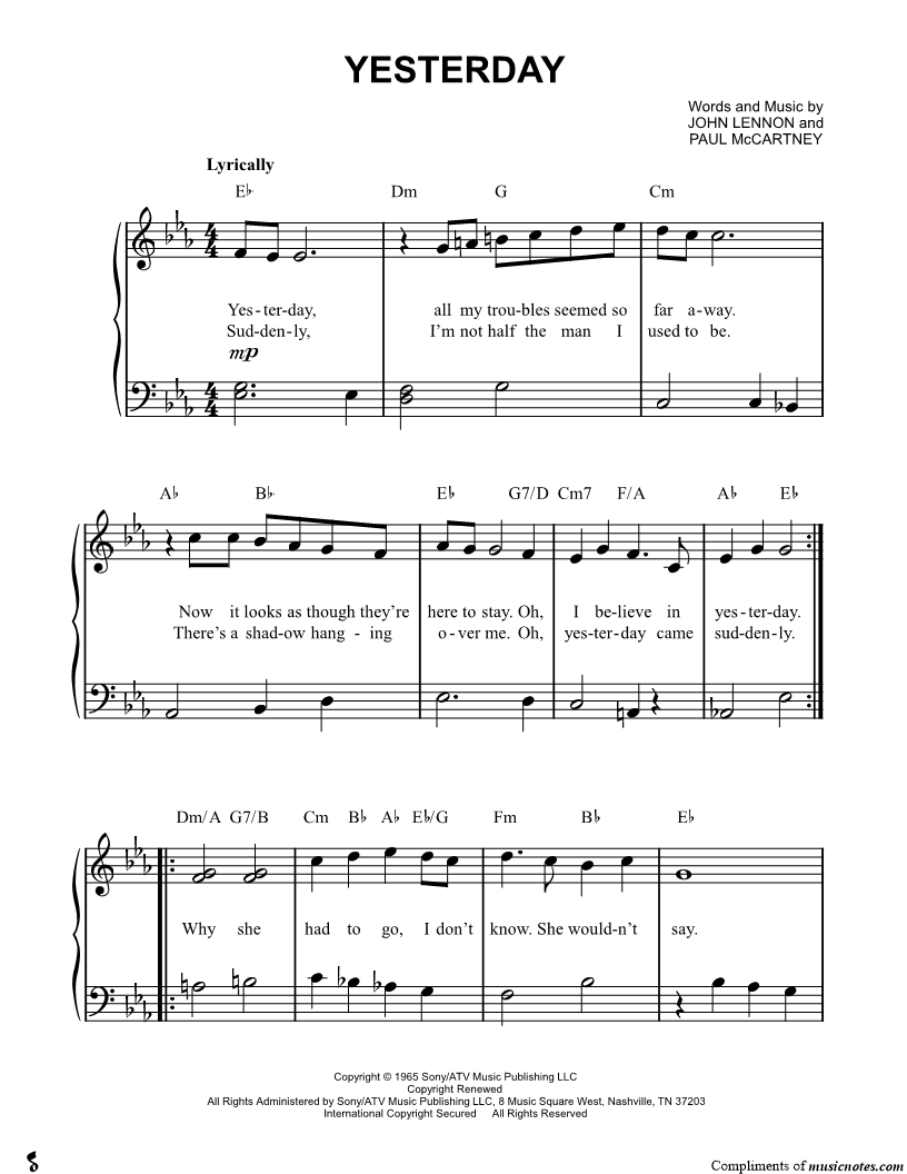 Yesterday, all my troubles seemed so far away. |