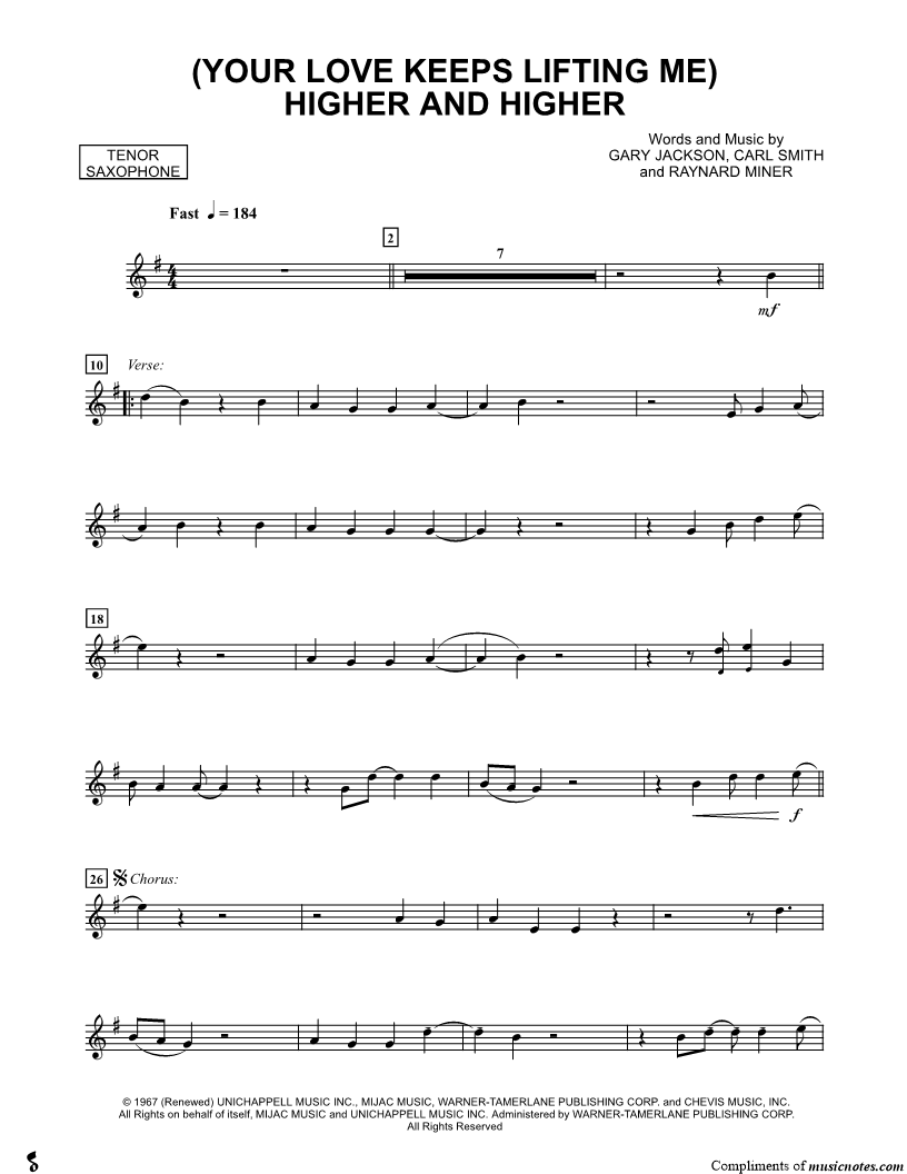 (Your Love Keeps Lifting Me) Higher and Higher - Tenor Saxophone |