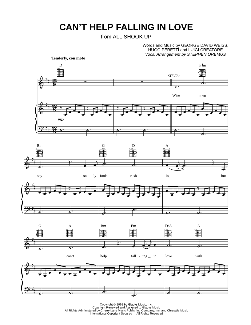 Wise men say only fools rush in, but I can't help falling in love with you. |