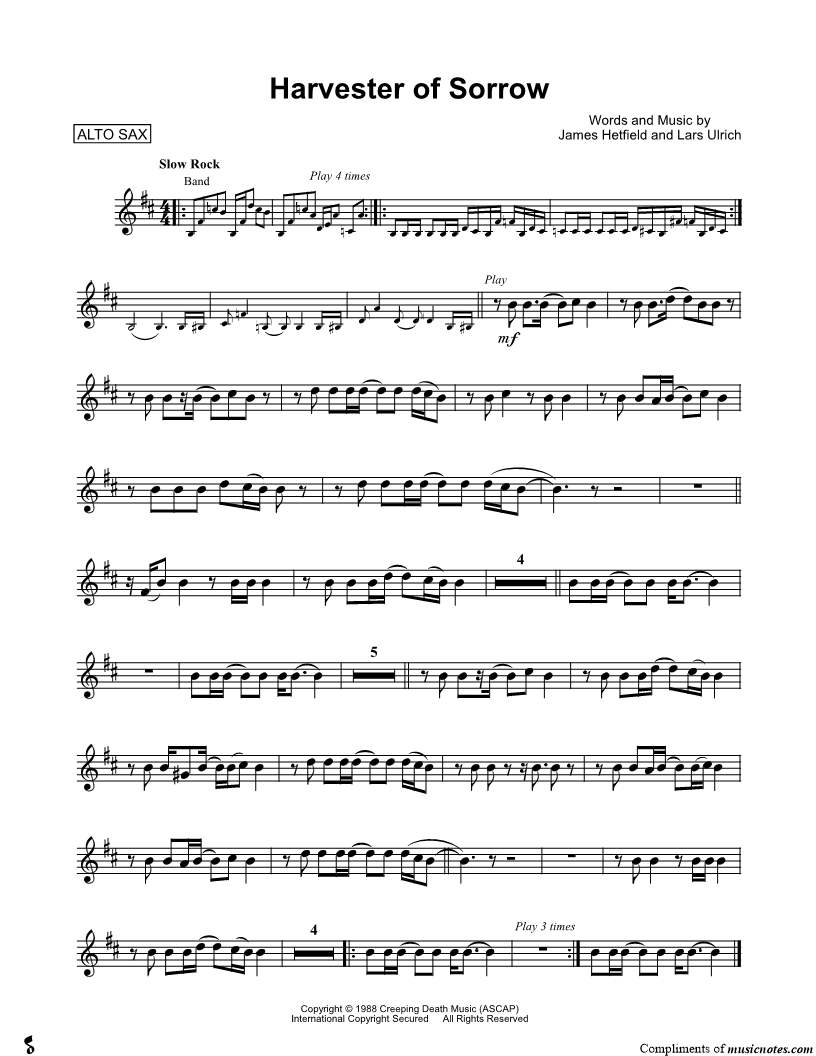 Best of Metallica for Alto Sax |