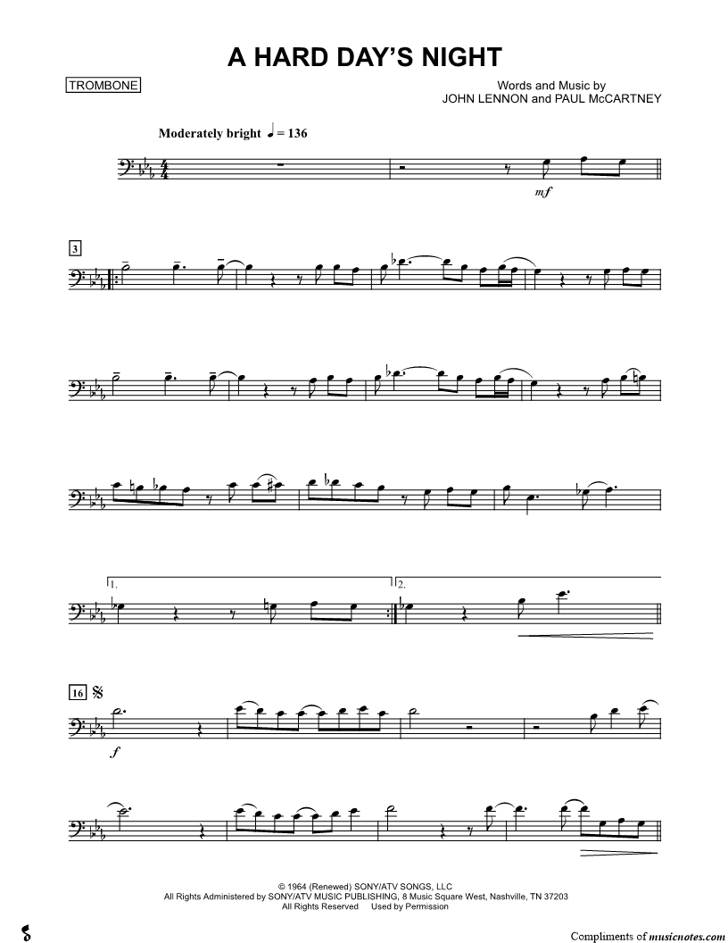 A Hard Day's Night - Trombone |