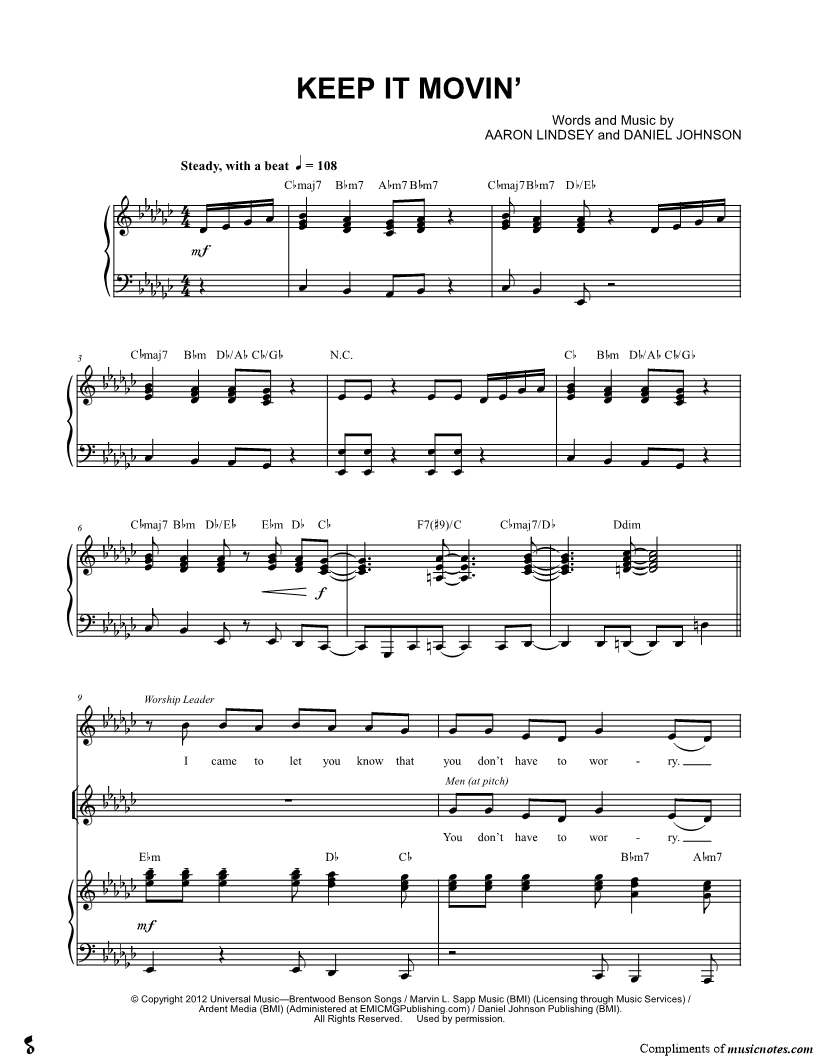Many of the arrangements on Musicnotes have transpositions available, typically in C Major, as well as 3 sharps and 3 flats. If you do not see your desired key, you can request a transposition by reaching out to Customer Support.