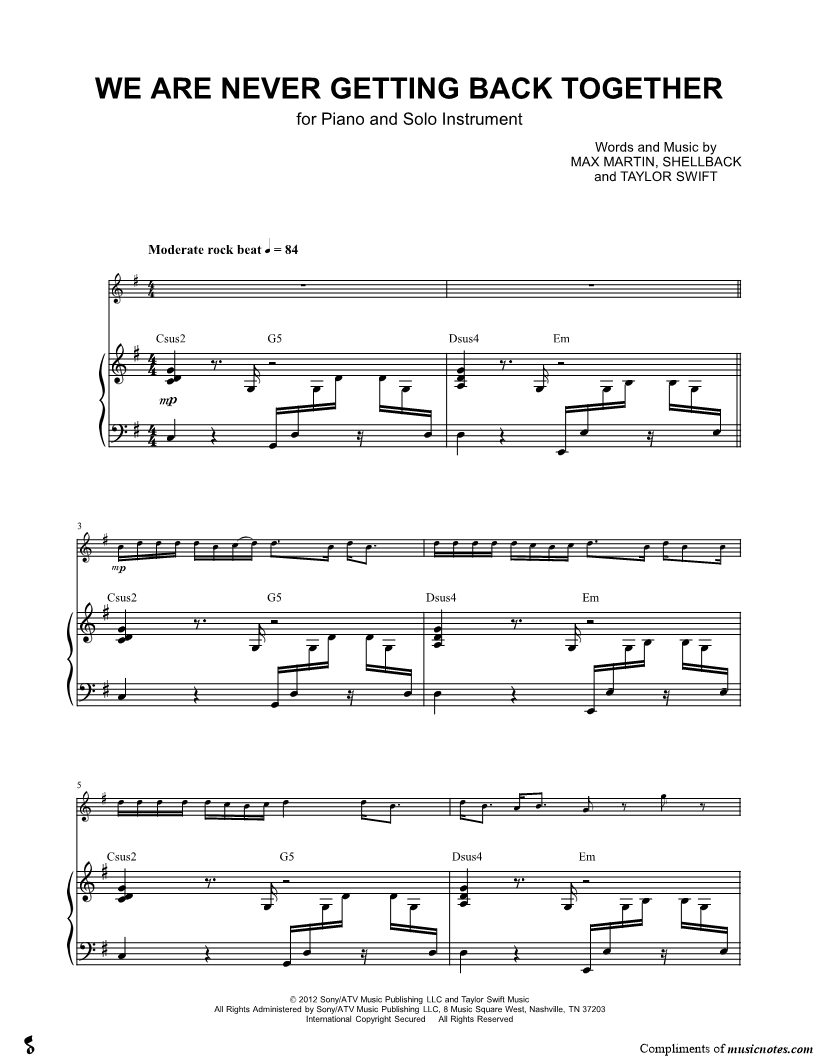 Collection: We Are Never Ever Getting Back Together - C Instrument & Piano