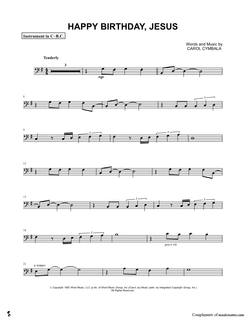 Happy Birthday, Jesus - Bass Clef Instrument |