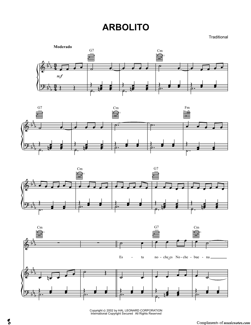 Esta noche es Nochebuena vamos al monte hermanito a cortar un arbolito porque la noche\ues serena. |