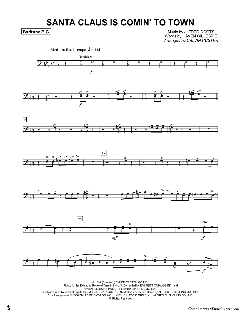 Santa Claus Is Comin' to Town - Baritone Bass Clef (Brass Choir) |